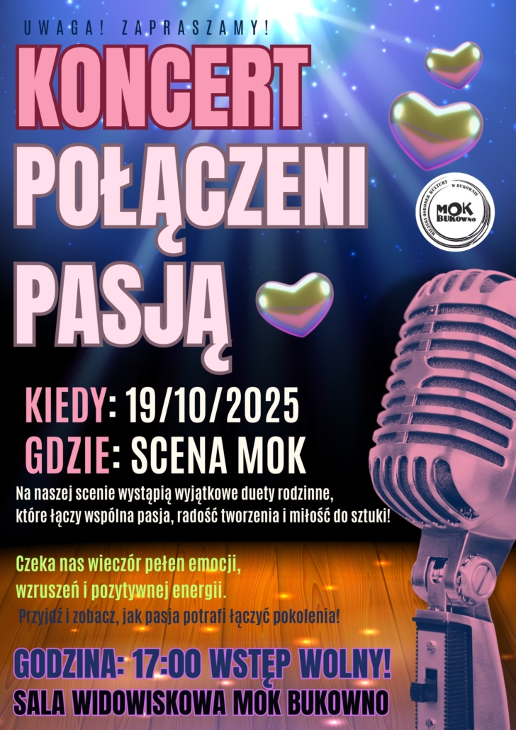 Serdecznie zapraszamy na koncert rodzinny „POŁĄCZENI PASJĄ” 🎶